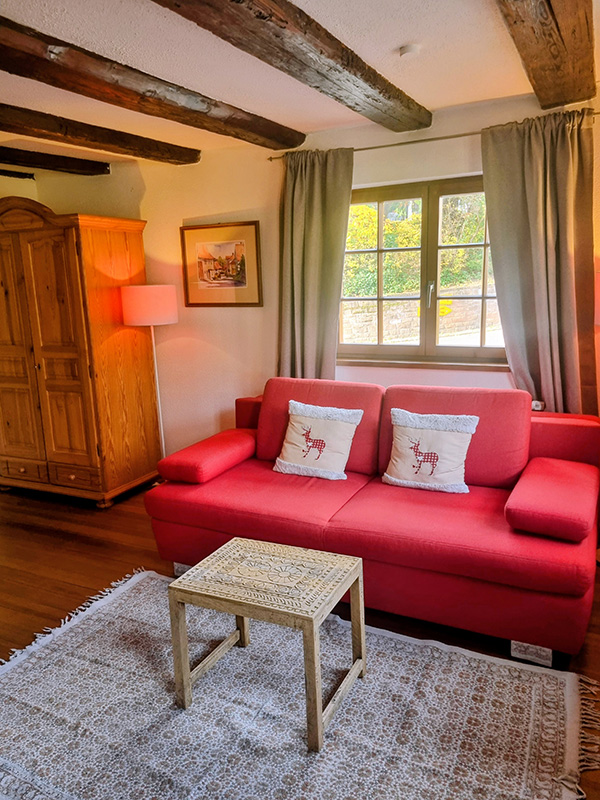 Die Stube bietet einen Rückzugsort mit eigenem Eingang und einer einladenden Atmosphäre.