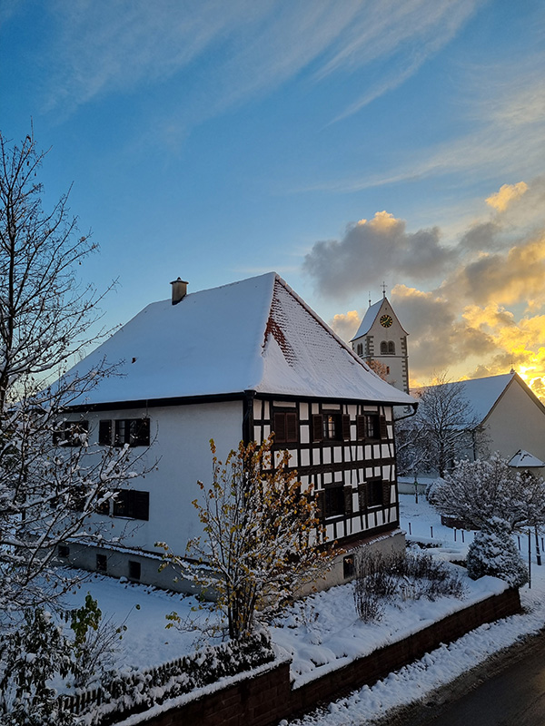 Erleben Sie die winterliche Ruhe am Bodensee! Kippenhausen, ein idyllischer Ortsteil von Immenstaad, lädt zu erholsamen Spaziergängen am See, Panoramablicken auf die Alpen und gemütlichen Stunden in Cafés ein.